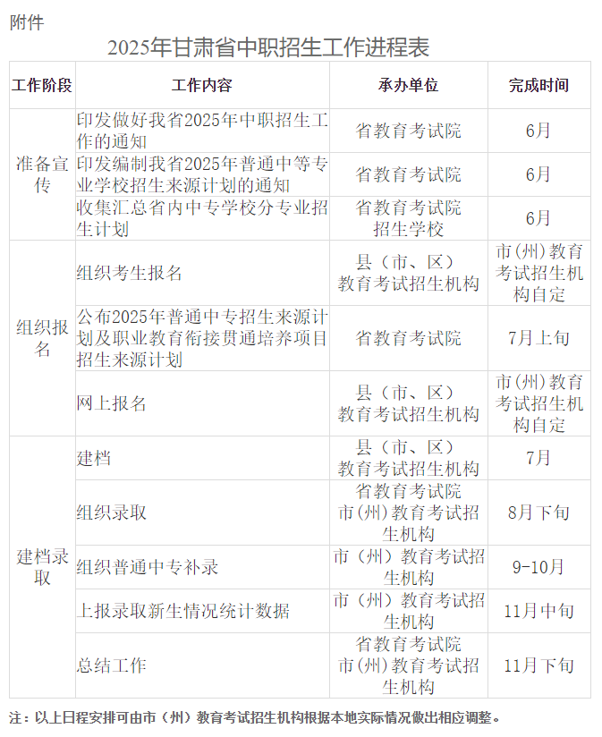 附件:2025年甘肃省中职招生工作进程表