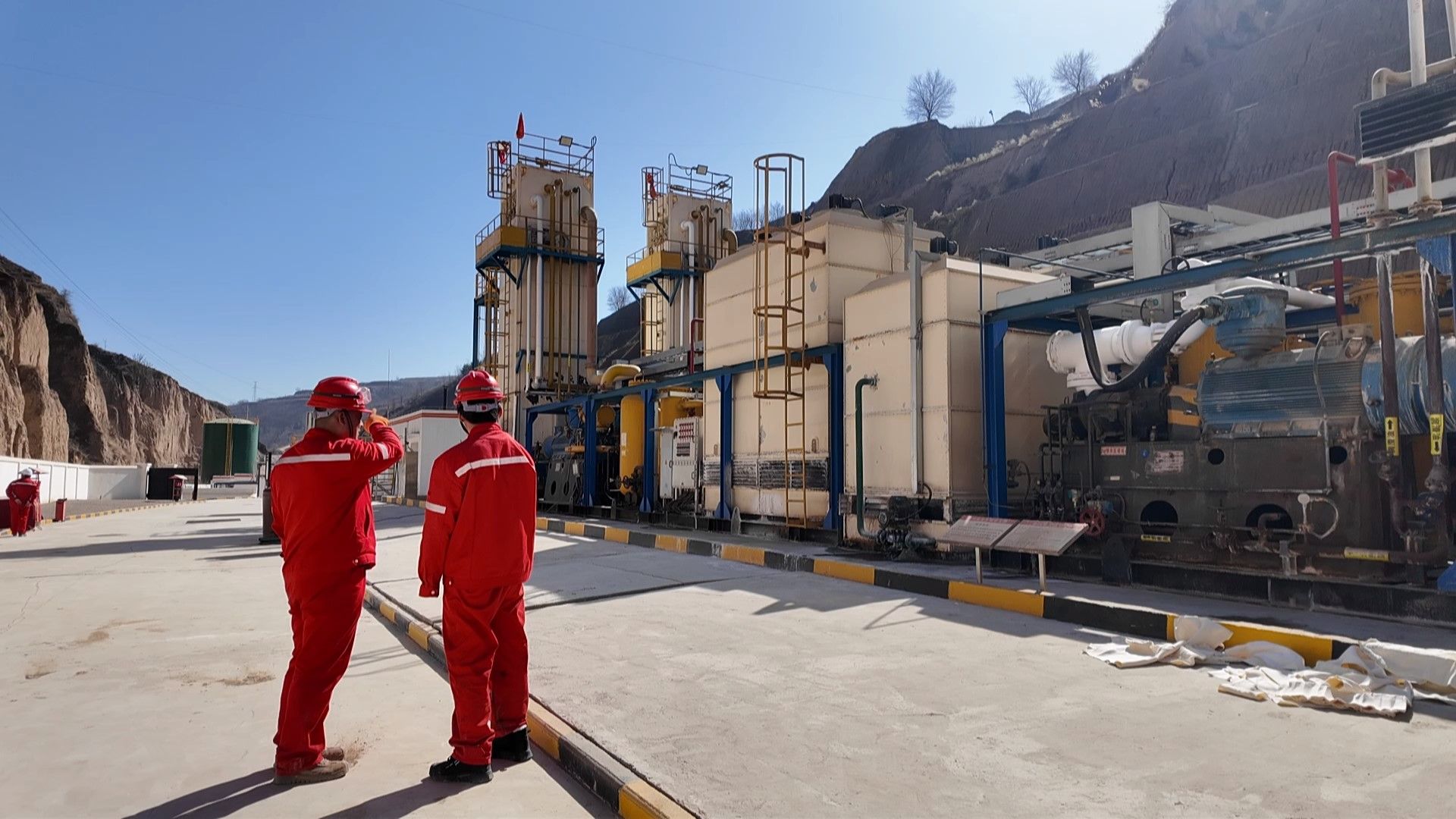 在华池县悦乐镇的绿源油气回收利用分离厂,尽管春节的脚步日益临近,但这里的生产节奏丝毫未减,工人们正有条不紊地进行设备调试和生产作业。