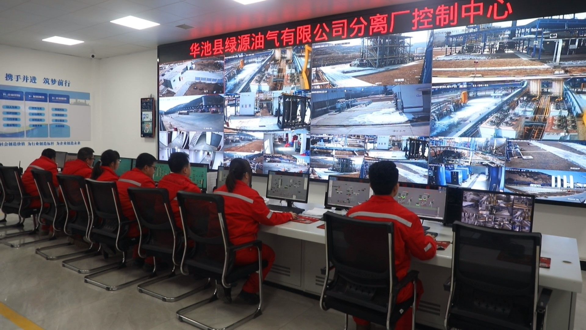 同样在华池县汉丰油气有限公司伴生气回收站,工人们正紧盯着屏幕上的各项数据,实时监控设备运行状态。