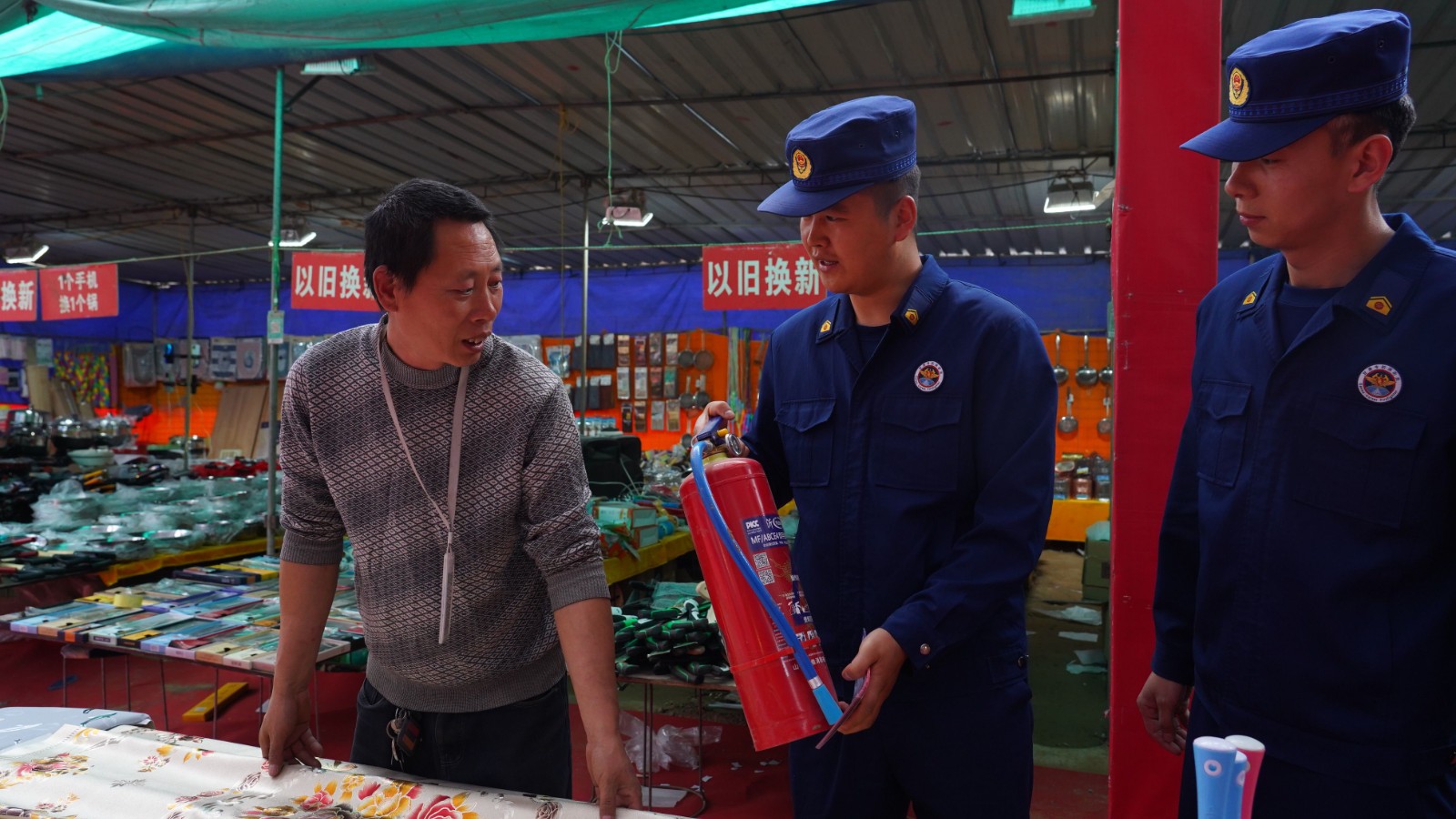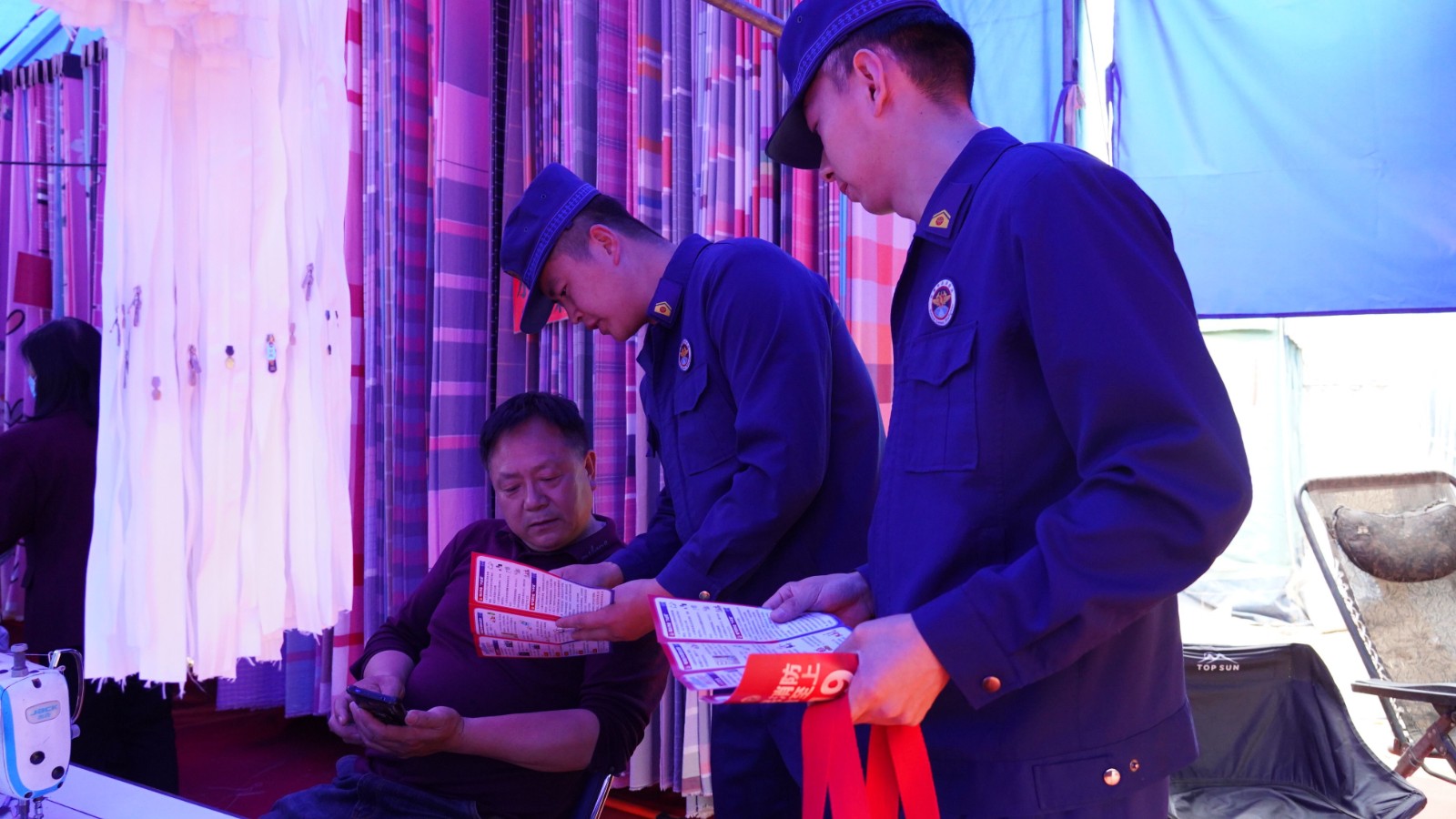 烟火气里话安全——华池县消防救援大队走进物资交流会开展消防安全宣传活动