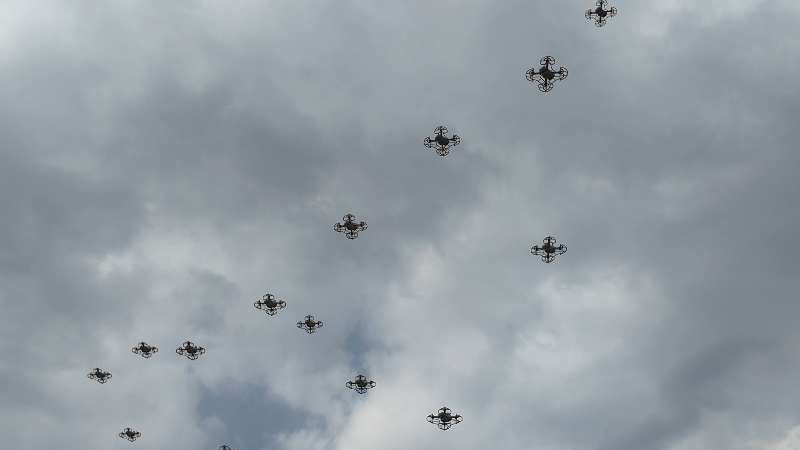 活动现场,编队无人机腾空而起,瞬间点燃全场热情。多架无人机精准协同,在蓝天之上完成花式编队与图案变换,无论是幼儿园小朋友的仰头惊叹,还是小学生们的认真观察,这场视觉盛宴都让飞行原理、协同控制等知识在潜移默化中传递给孩子们。紧随其后,阿尔法机器人成为全场的焦点,伴随音乐整齐舞动,动作灵动精准,生动展现了人工智能与机器人技术的最新成果。智能机器狗更是将气氛推向高潮,只见它时而稳步前行,时而摇尾蹲坐,引得孩子们争相围观、欢呼雀跃,不少孩子蹲下身子,试图与这位“新朋友”握手互动。