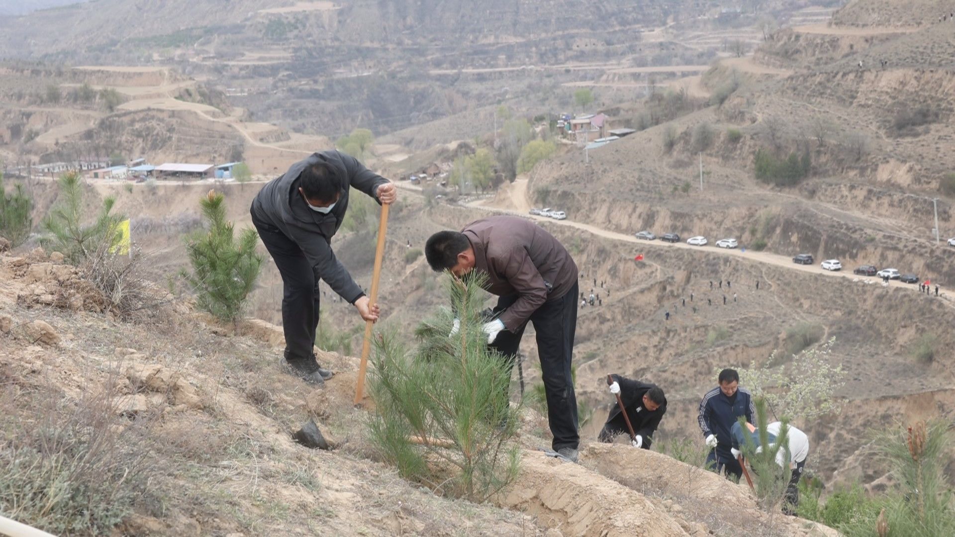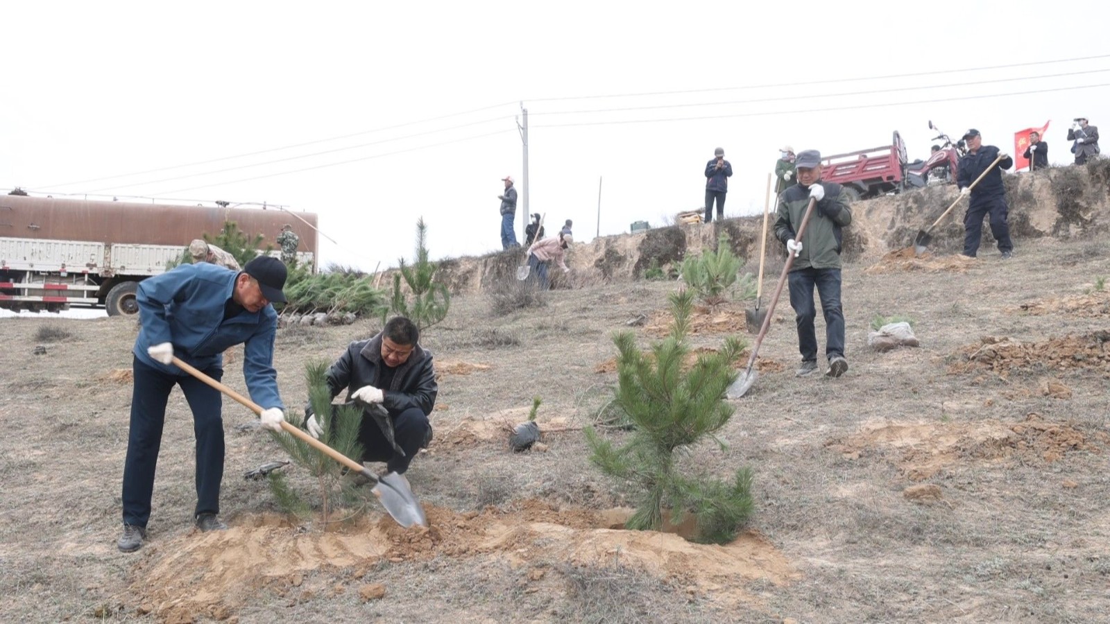 植树现场,处处洋溢着热火朝天的劳动氛围。县直机关、企事业单位全体职工并肩劳作,大家分工明确、配合默契,挥锹挖坑、扶苗扶正、填土压实、提桶浇水,每一道工序都有条不紊、细致规范。原本空旷的土地上,一棵棵油松、沙棘等乡土苗木整齐排列、迎风而立,焕发出勃勃生机,为春日的华池大地增添了浓浓绿意,也种下了生态文明的希望与担当。